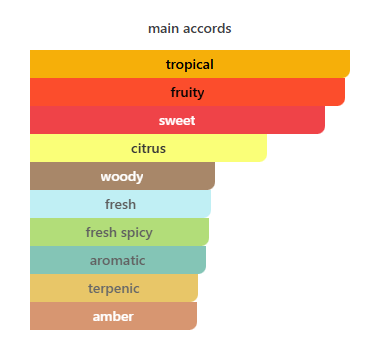 En el corazón aparecen acordes florales y especiados, mientras que el fondo de tonka, ámbar y maderas le da profundidad y una estela elegante y seductora. Un perfume versátil, llamativo y perfecto para quienes buscan un aroma dulce, moderno y con gran presencia.